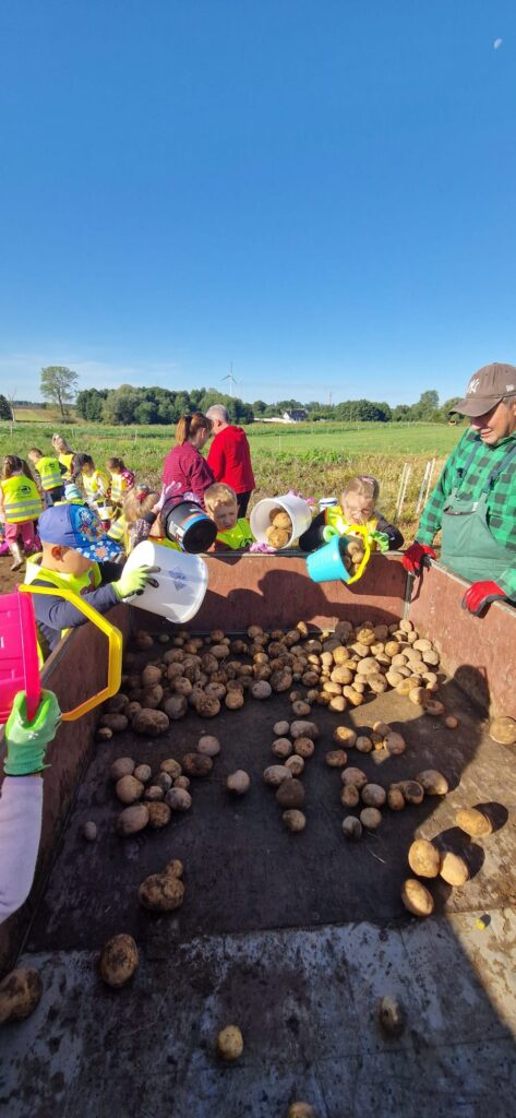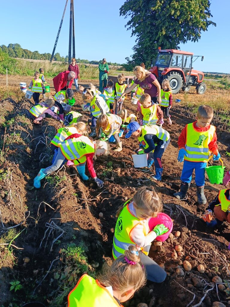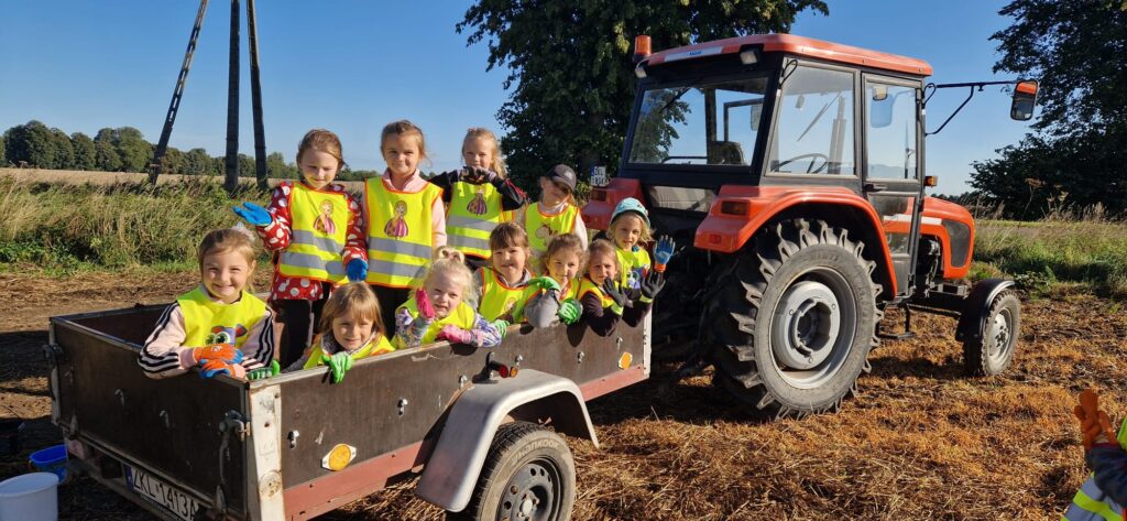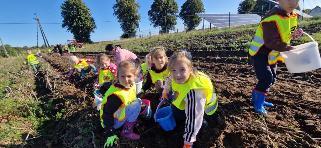 Dzieci zobaczyły, jak działa kopaczka, a potem same zabrały się do roboty. Okazały się tak pracowite, że Pan Mariusz… musiał przygotować im dodatkowy rządek ziemniaków! 🥔💪