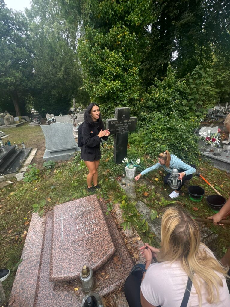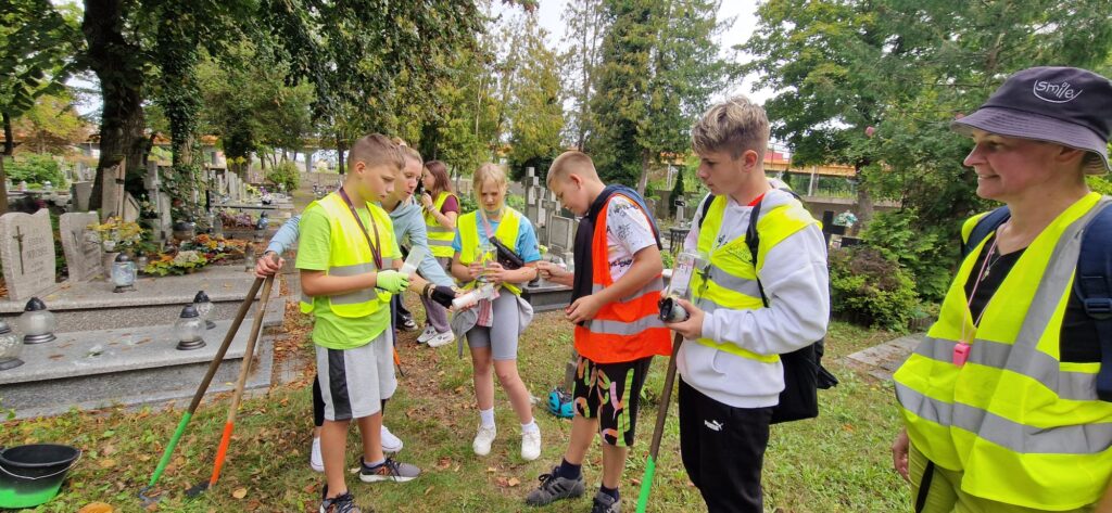 Na cmentarzu czekała na nas członkini szkolnego Wolontariatu, pani Małgorzata Pluta, która wspólnie z nami uczestniczyła w pracach porządkowych.
