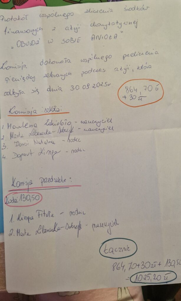 Szkoła i oddziały przedszkolne (5 i 6-latki) zebrały: 894,70 zł